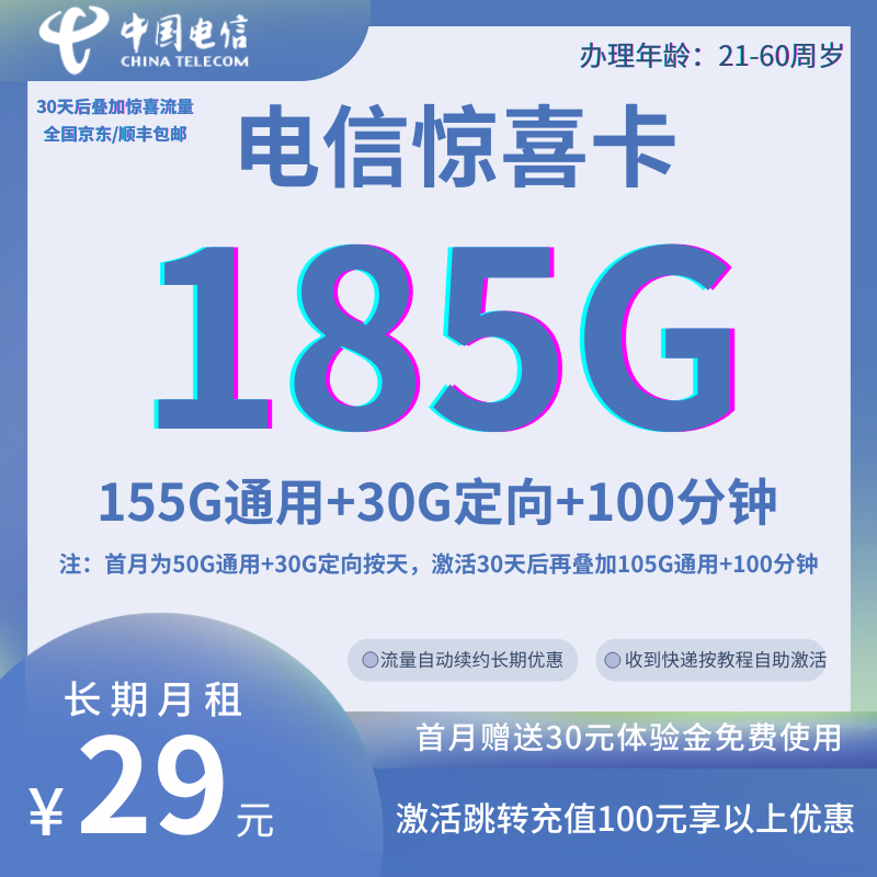 29元192G全国通用流量+0.15元/分钟(首月免费,收货地即为归属地)